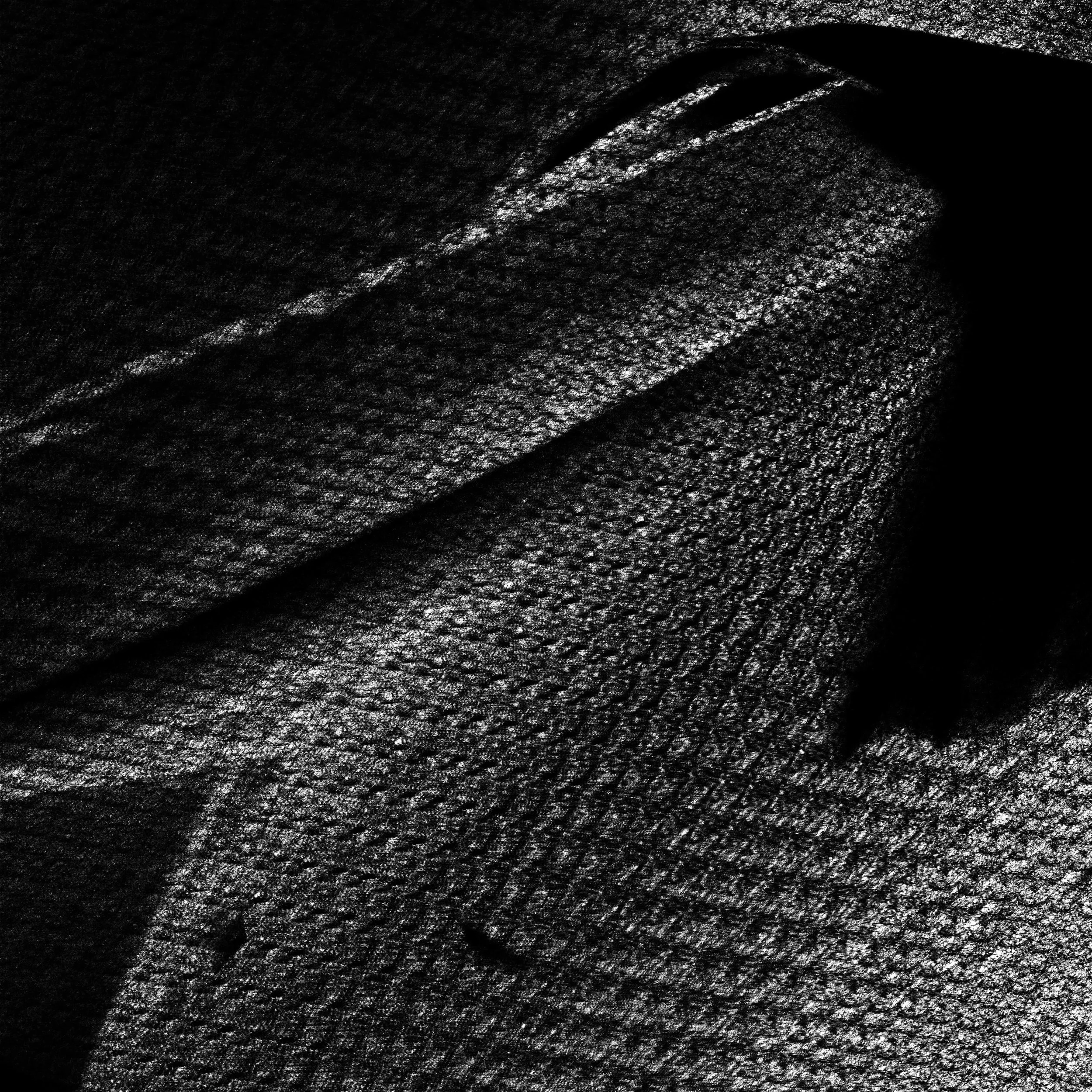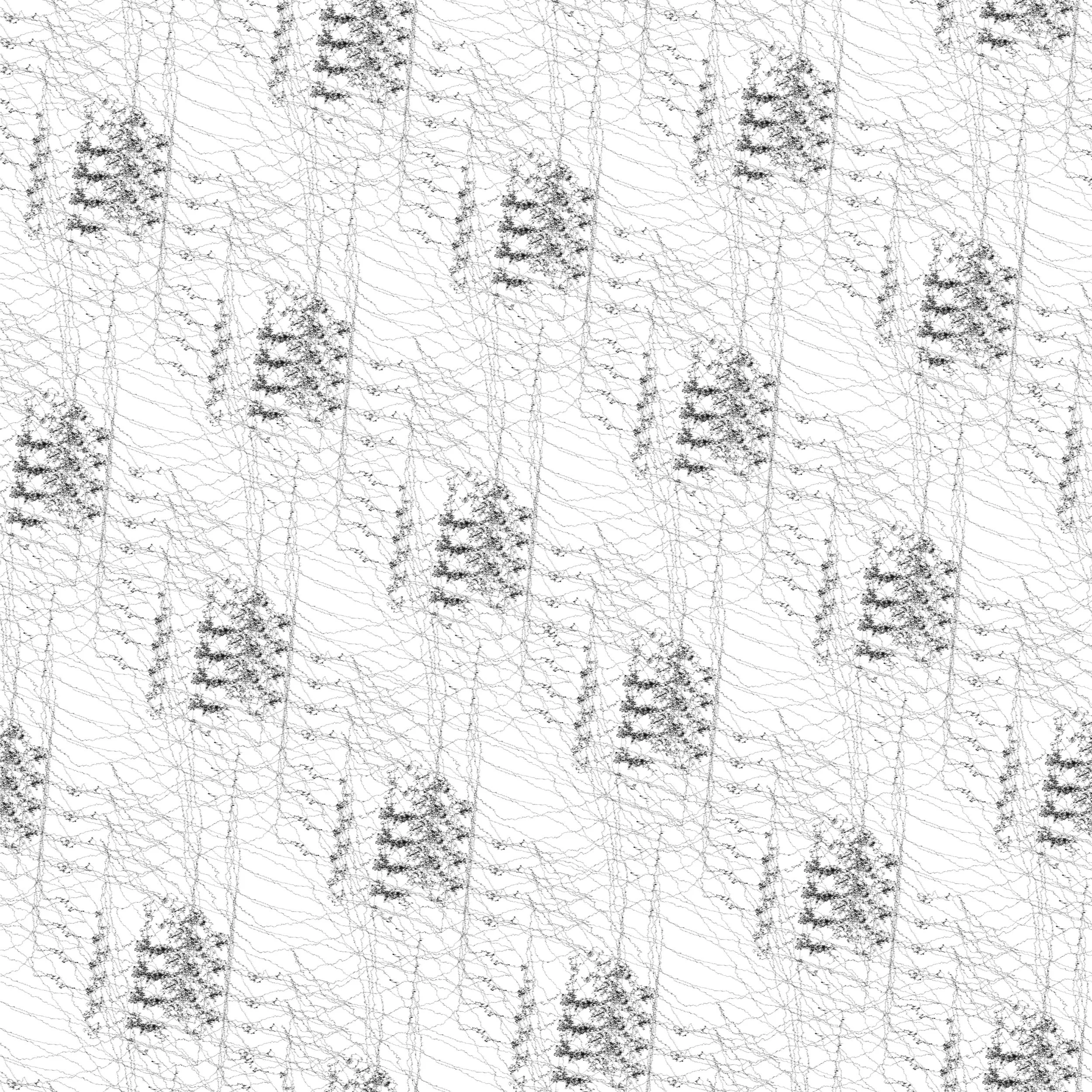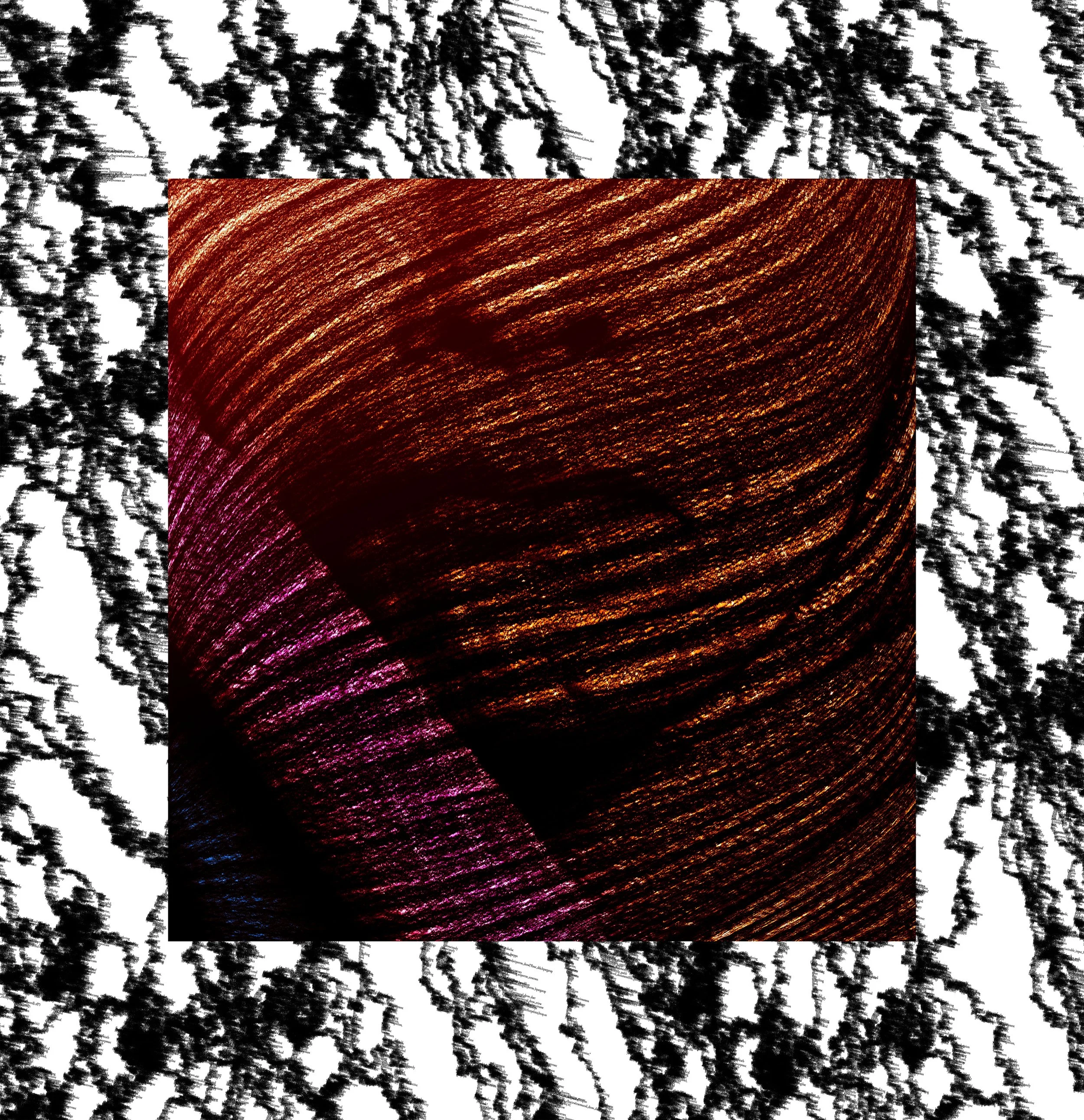 So I wrote a Python script to calculate each word’s entropy score, then placed each word at an angle based on its score. If 90 degrees was chosen to represent the highest possible entropy score for that work, and if a word scored the max entropy level, it would be placed 90 degrees above the previous word. Likewise, if -90 degrees was the lowest score possible chosen, and a word had the lowest entropy, then that word would be placed perpendicularly below the previous word at -90 degrees. Each Entrograph, the name for the black and white images, has its own rules for maximum and minimum angles, spacing between words, other details to enrich patterns, and how many times the story repeats. Once I started making thousands of these, I started combining some of my favorite ones with photography I had taken in Photoshop. That was a whole other challenge—layering them to look compelling was really hard. So many failures. Doubt was extremely vocal during that time. I have hundreds of works still in progress. But in the end, only six made the cut. Maybe I’ll show the others in some different way… I have an idea for them.