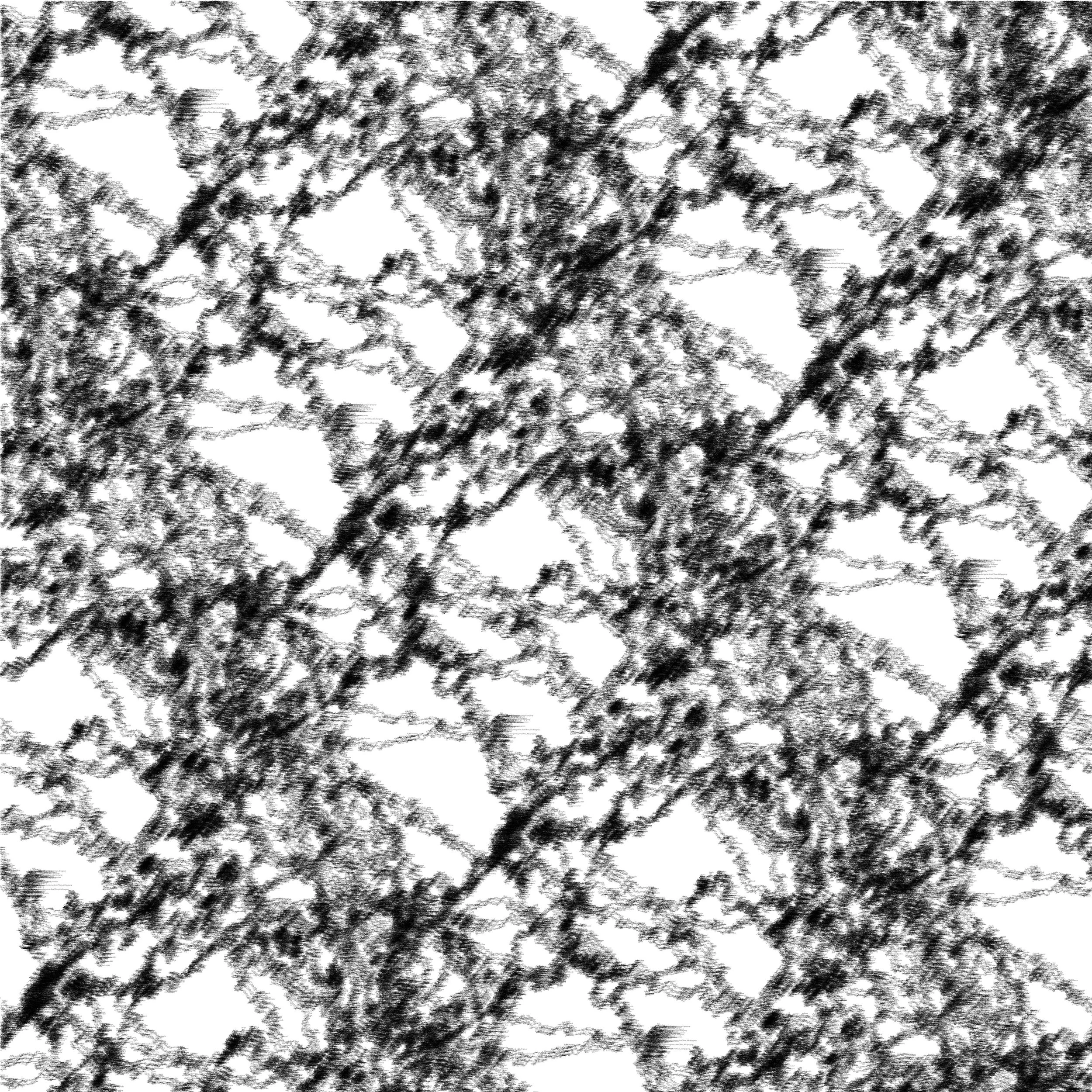 You are actually looking at a story I wrote. It was about 40,000 words which is about 120 pages and the words are very tiny. To create richer patterns, the story repeats over and over so depending on which work you are looking at, there are between 40 thousand and 500 million words.
